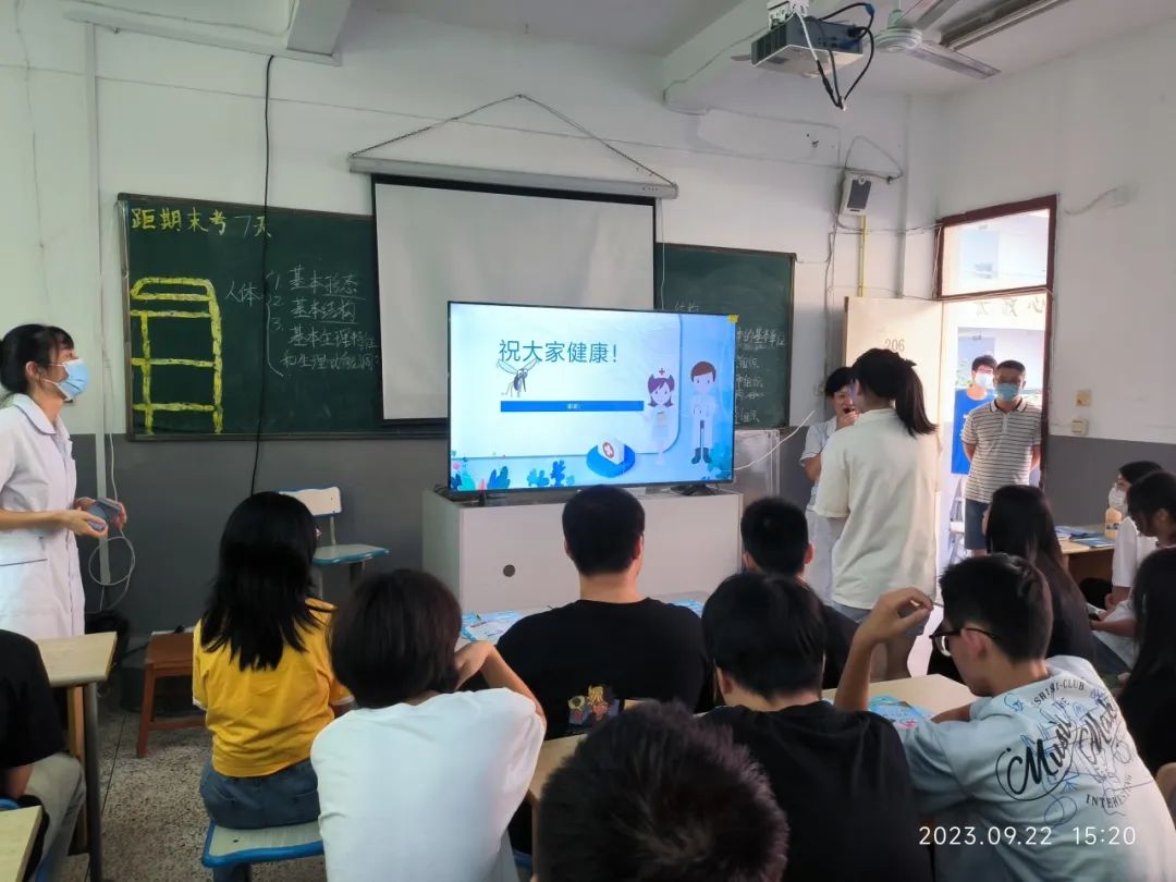 学校通过晨会,主题班会、健康宣传专栏、班级微信群等多种媒体和教育活动形式,大力宣传登革热防控和防蚊灭蚊相关知识,引导全校师生员工养成良好的卫生习惯,做好个人防蚊防护,并于 2023 年9月22 日下午,邀请了福清市龙山街道社区卫生服务中心到校为全校学生上了一节“登革热疫情防控”专题课。讲座中,同学们认真聆听,积极参与问答交流、示范互动,通过此次活动,进一步提升全体师生员工登革热防控意识和自我防护能力。